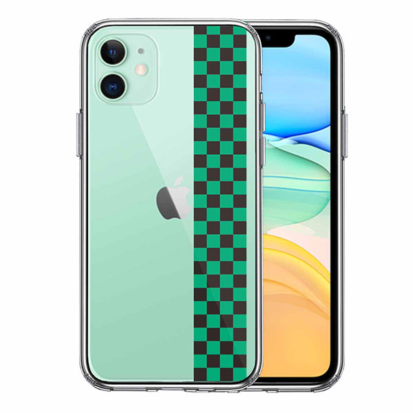 iPhone11 ケース ハードケース ハイブリッド クリア 和柄 帯 市松 常盤緑 黒 カバー アイホン アイフォン スマホケース