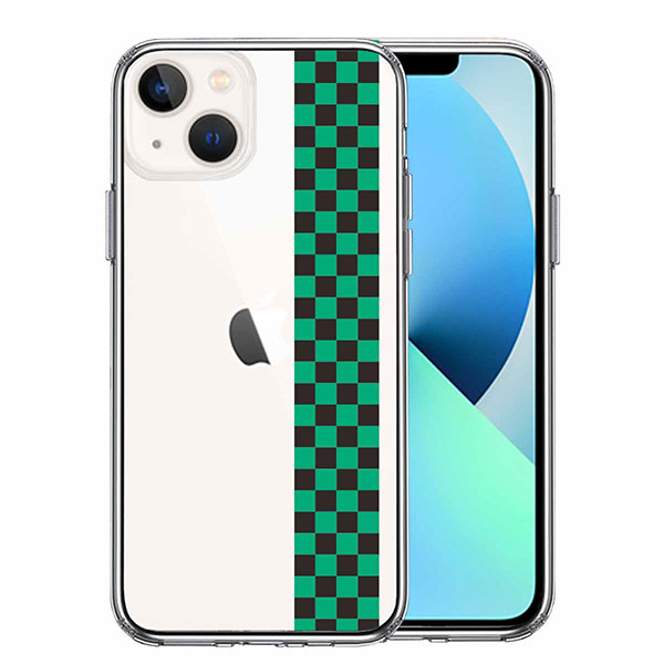 iPhone13 ケース ハードケース ハイブリッド クリア 和柄 帯 市松 常盤緑 黒 カバー アイホン アイフォン スマホケース