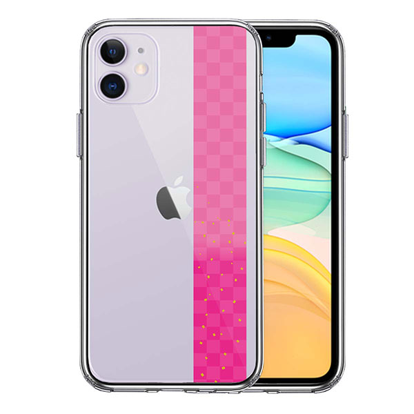iPhone11 ケース ハードケース ハイブリッド クリア 和柄 帯 市松模様 ピンク 金箔 カバー アイホン アイフォン スマホケース