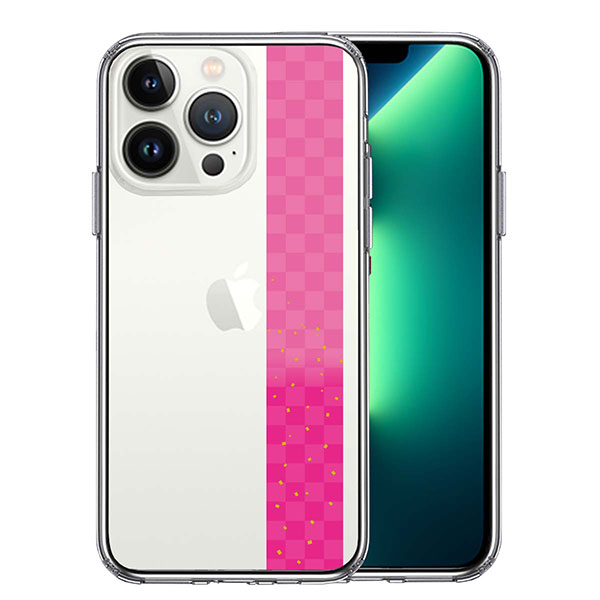 iPhone13 Pro ケース ハードケース ハイブリッド クリア 和柄 帯 市松模様 ピンク 金箔 カバー アイホン アイフォン スマホケース