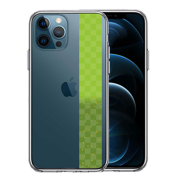 iPhone12 iPhone12Pro ケース ハードケース ハイブリッド クリア 和柄 帯 市松模様 グリーン 緑 金箔 カバー アイホン アイフォン スマホケース