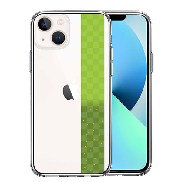 iPhone13 mini ケース ハードケース ハイブリッド クリア 和柄 帯 市松模様 グリーン 緑 金箔 カバー アイホン アイフォン スマホケース