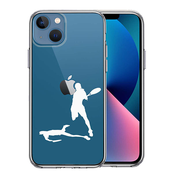iPhone13 mini ケース ハードケース ハイブリッド クリア テニス スマッシュ ホワイト カバー アイフォン スマホケース