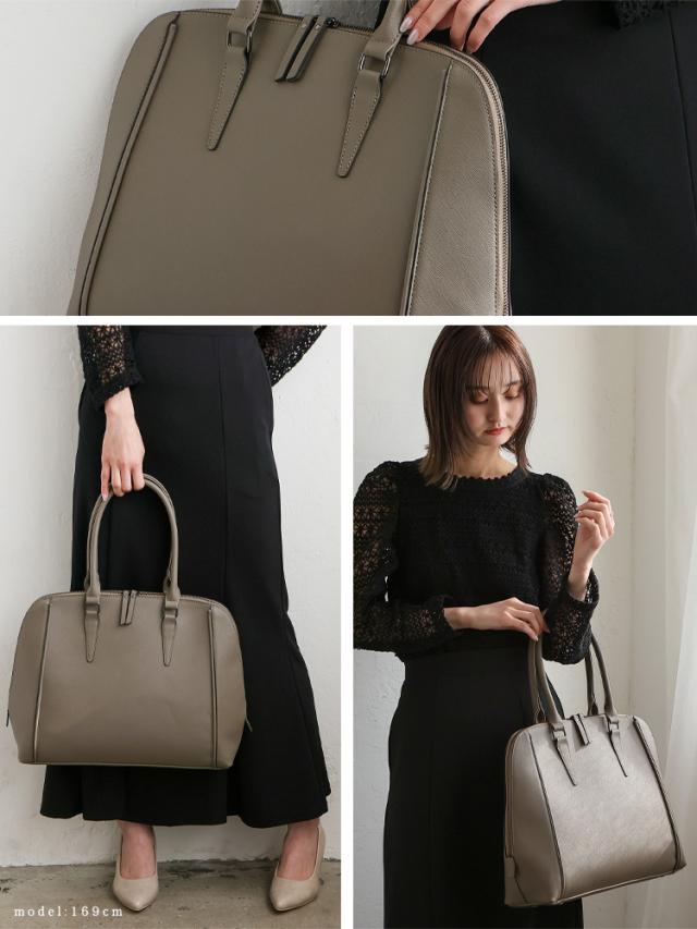 長めハンドルでアウター上からも肩掛けしやすく、自立するかっちりとしたデザイン。