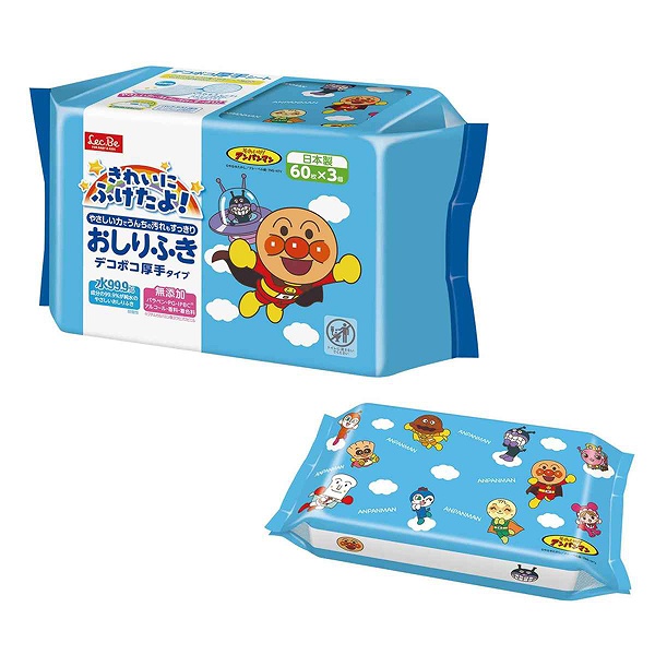 おしり拭き アンパンマン 60枚 3個入り ( おしりふき お尻ふき お尻拭き 厚手 水99.9% 純水 日本製 赤ちゃん ベビー パラベンフリー アルコールフリー ノンアルコール 無添加 衛生用品 あんぱんまん )