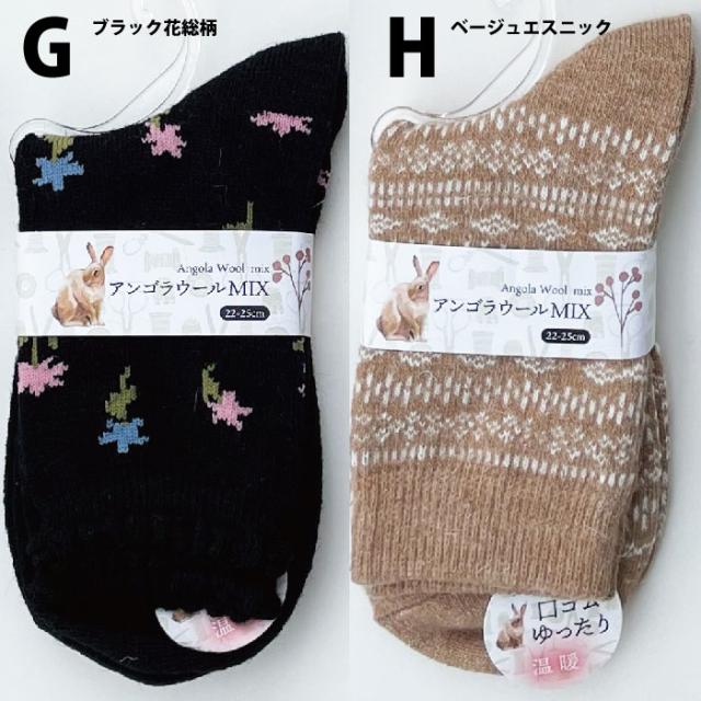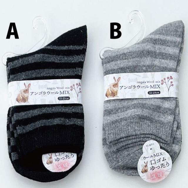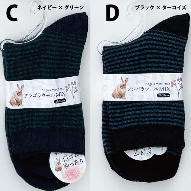 メール便2足まで アンゴラ混 靴下 クルー丈 ふくらはぎ丈 ソックス レディース選べる10柄 22〜25cm 婦人 女性 靴下 ベーシック ボーダー 靴下LegStyle
