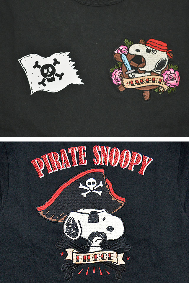 左胸には海賊のスヌーピーを刺繍し、右胸には海賊旗をプリント。