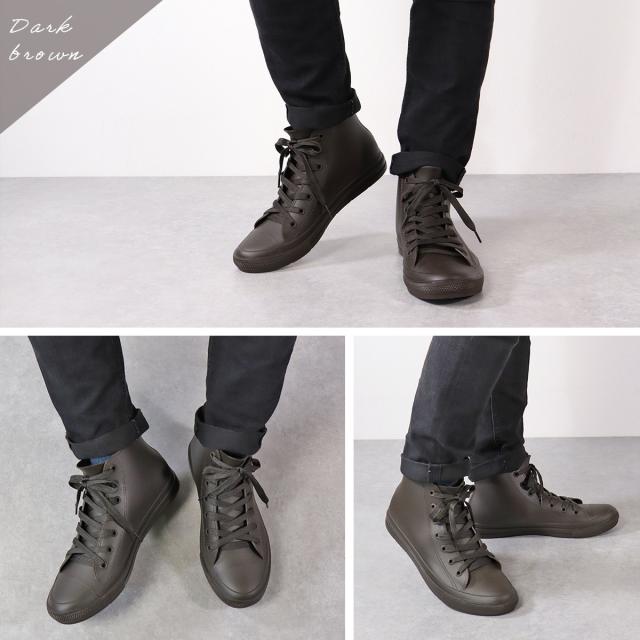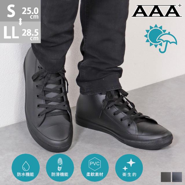 完全防水 晴雨兼用 レインシューズ メンズ スニーカー ハイカット ラバー 防水 雨 2.5cmソール No.2401 25.0-28.5cm 通勤 通学 ビジネス 黒 茶 ブラック ブラウン 雪 梅雨 台風 おしゃれ レースアップ 靴 シューズ AAA+ サンエープラス ラバーシューズ ゴム製 インソール 防滑