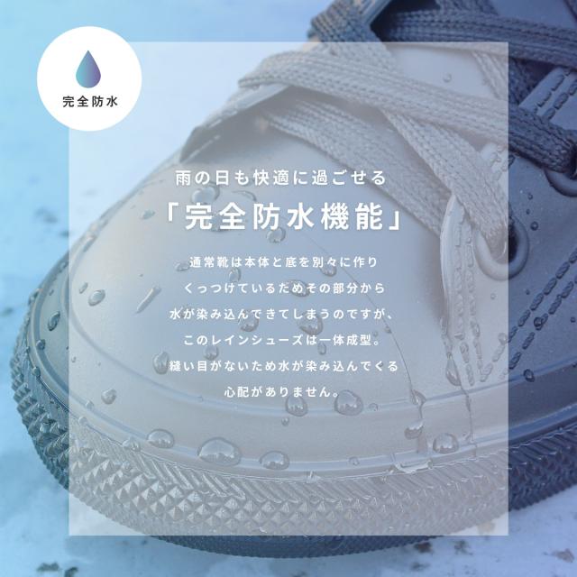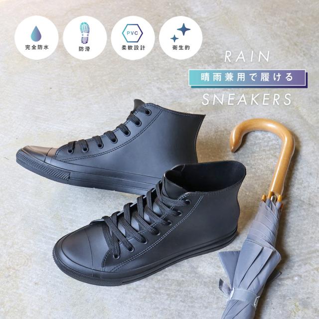 ハイカットタイプなので幅広いスタイルに合わせやすく、急な雨でも安心です。