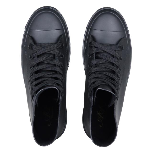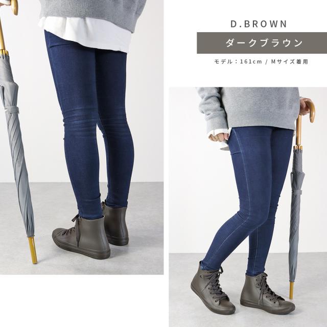 完全防水 晴雨兼用 スニーカー ハイカット レインシューズ レディース 2.5cmヒール ラバー 防水 雨 柔らかい No.3554 22.5-25.0cm 防滑 通勤 通学 雪 梅雨 台風 黒 茶 ブラック ブラウン レースアップ シューズ ゴム製 インソール 滑りにくい 靴 サンエープラスフェミニン