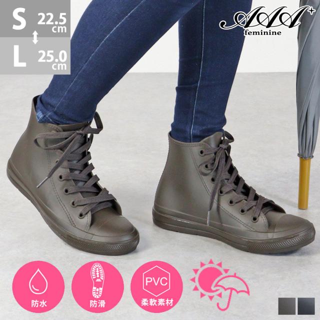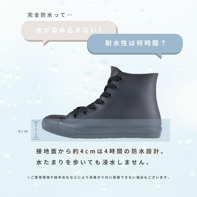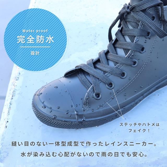 【返品交換不可】シューズ スニーカー ハイカットスニーカー レインシューズ レインスニーカー 完全防水 レディース 靴 雨靴 防水 22.5cm〜25.0cm 黒 ブラック AAA+ Feminine No.3554