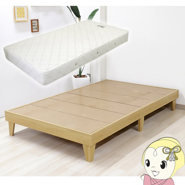 【直送】E379-85-156639-No-SD 友澤木工 木製プレインベッド ヘッドレスタイプ セミダブル ナチュラル(マットレス付き)
