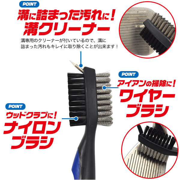 アイアンやパターなどのゴルフクラブの掃除に最適なゴルフクラブブラシ。