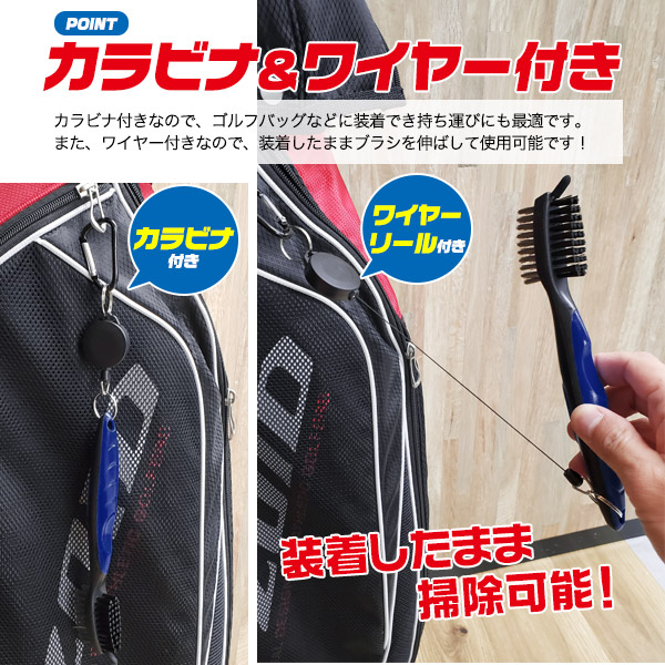 クラブブラシ ゴルフ アイアン クリーナー 両面ブラシ カラビナ付き お手入れ ブラシ リール付き 装着したまま 掃除可能 アイアン溝削り ウェッジ パター 溝クリーナー ゴルフクラブ 掃除 溝切ツール シャープナー ゴルフ ウェッジクリーナー メンテナンス ゴルフ用品