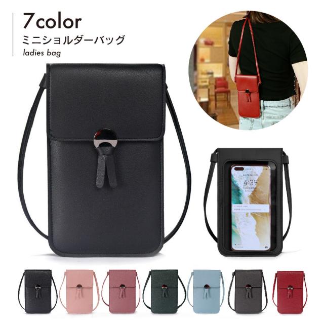 ミニショルダーバッグ レディース スマホポーチ スマホポシェット 女性 カード入れ 小物入れ 透明ケース 操作可能 無地 鞄 か