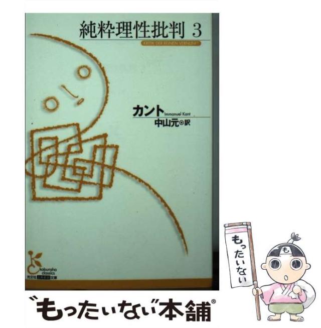 商品名:【中古】 純粋理性批判 3 (光文社古典新訳文庫) / イマ ヌエル カント、 中山 元 / 光文社 [文庫]【メール便送料無料】