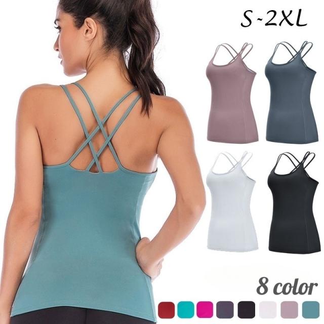 ヨガウェア ブラトップ パッド付き キャミソール下着 レディース インナー Uネック Xバック バッククロス ダブルストラップ
