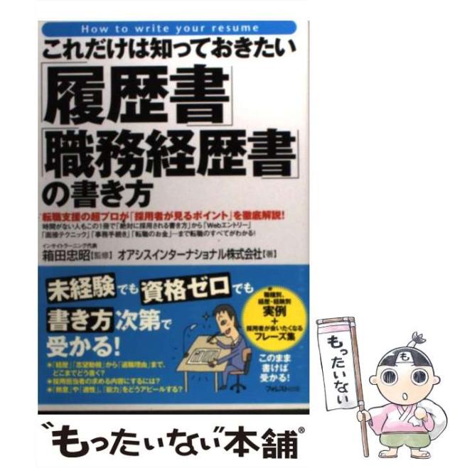 商品名:【中古】 これだけは知っておきたい「履歴書」「職務経歴書」の書き方 転職支援の超プロが「採用者が見るポイント」を徹底解説! / オア / [単行本(ソフトカバー)]【メール便送料無料】