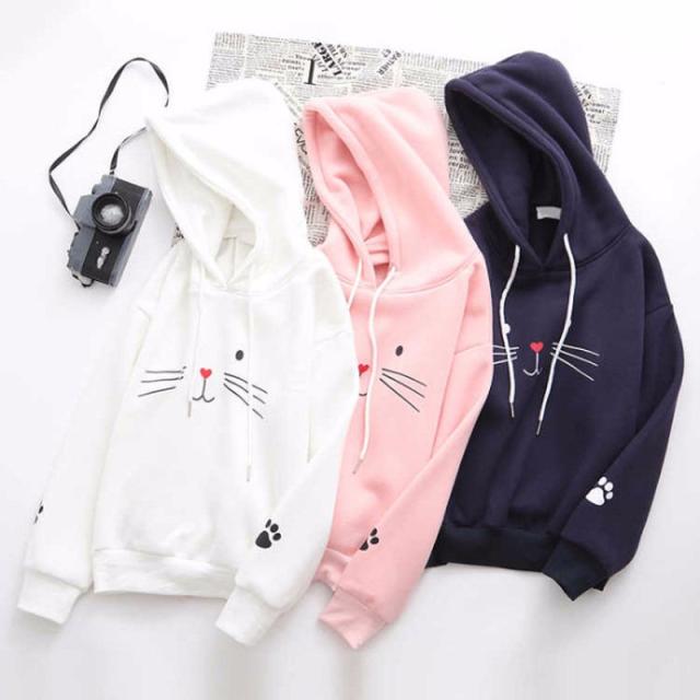 猫柄 長袖 フード付き 可愛い レディース 厚手 パーカー プリント レディース カジュアル 高校生 通学 着痩せ