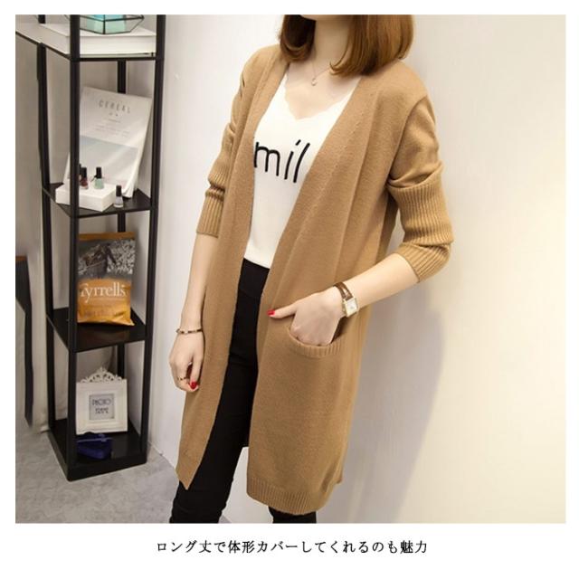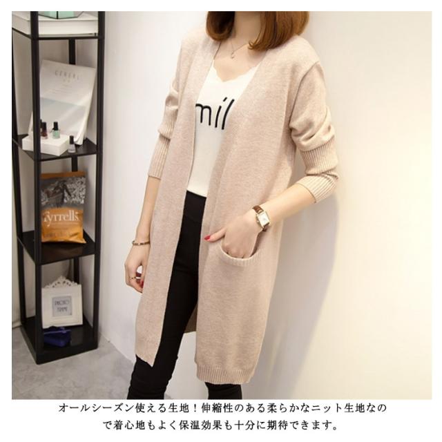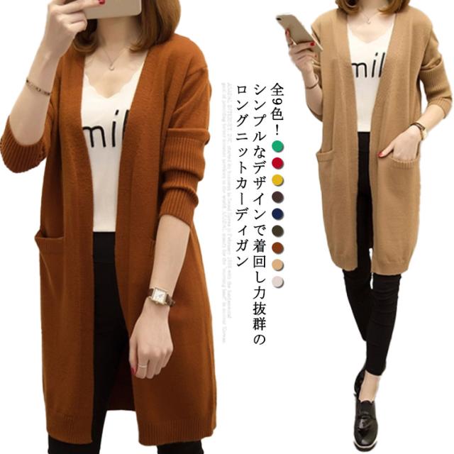 秋 ニット セーター ロング レディース 防寒対策 ロング リブ袖 無地 冬 送料無料 カーディガン UV対策 ロングカーディガン 春秋 コート 体型カバー アウター ゆるシルエット Vネック ポケット付き あったかい カジュアル ニットカーデ