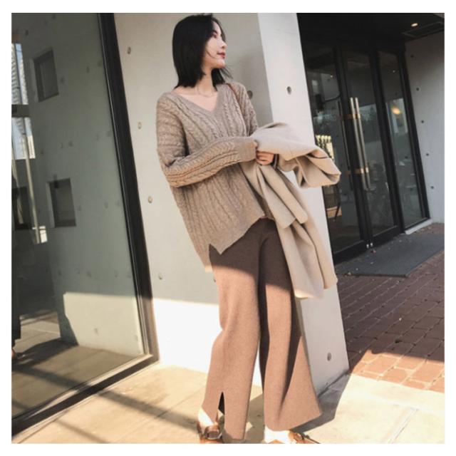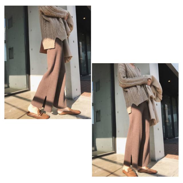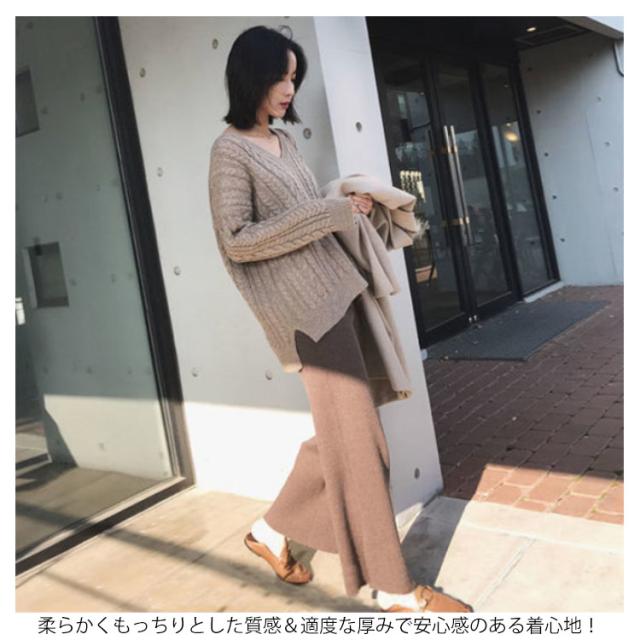 大きいサイズ リブパンツ 厚手 レディース 春 ワイドパンツ パンツ 秋 リブ リブニットパンツ ガウチョパンツ 秋冬 冬 ストレート ウエストゴム プリーツパンツ ニットパンツ リブニット ロングパンツ ニットパンツ