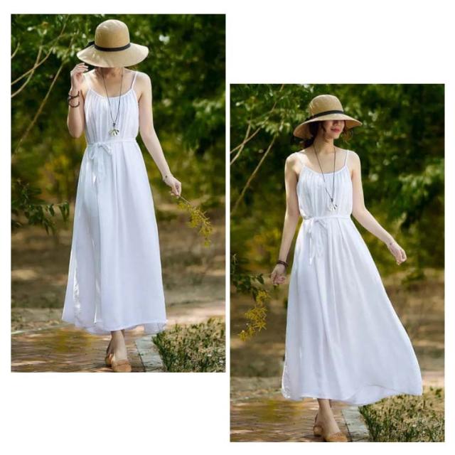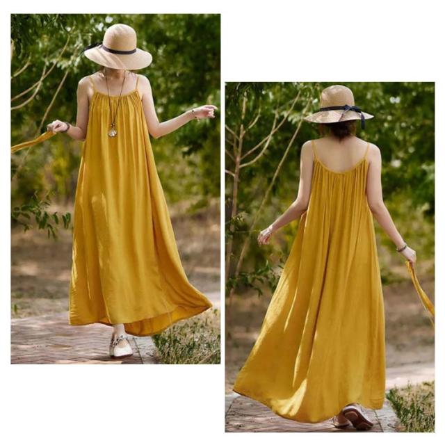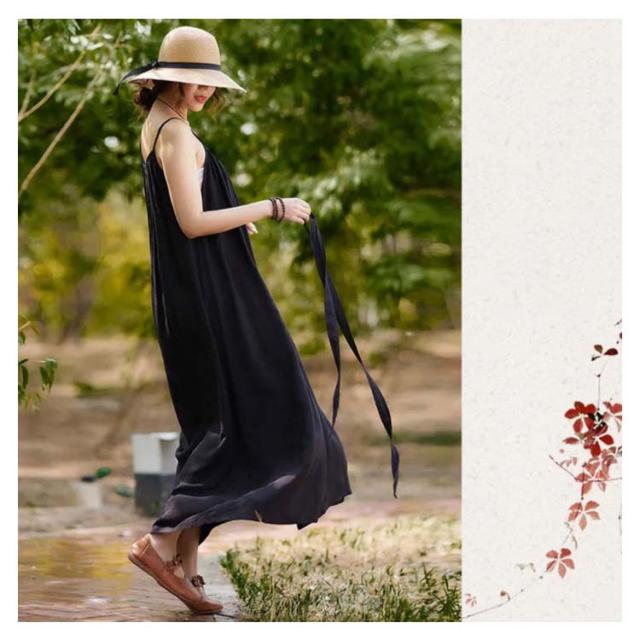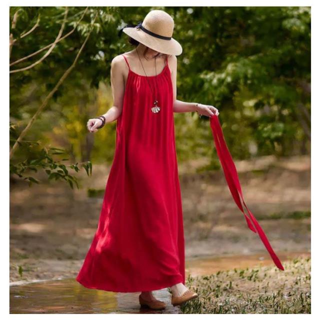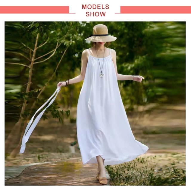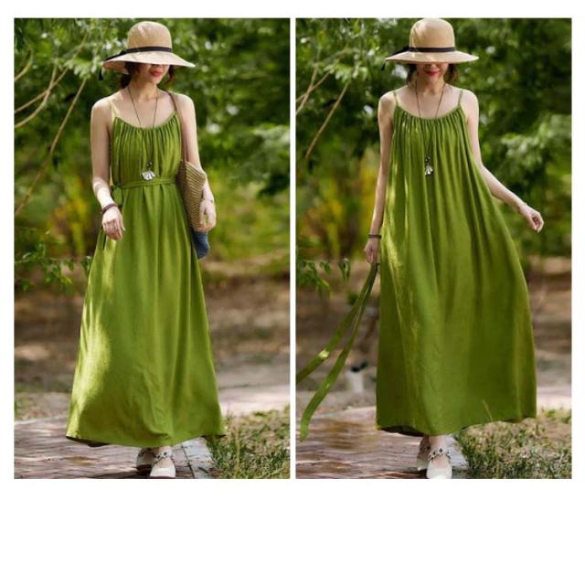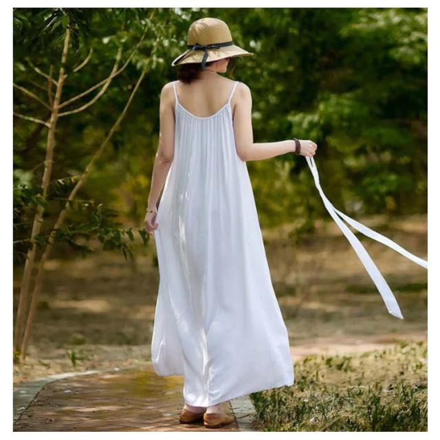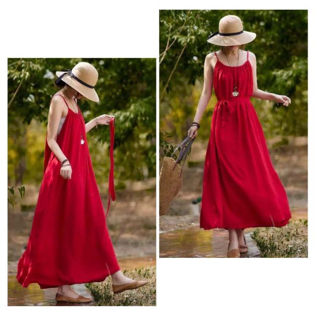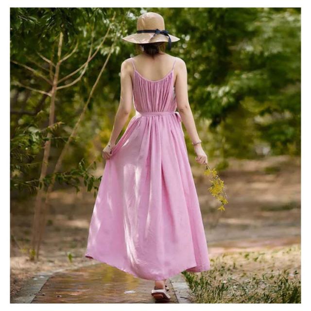 着痩せ ノースリーブ ロングキャミソール シンプル 夏 キャミソール ビーチワンピース ゆったり 丸襟 ベルト付き ミモレ丈 ロングキャミソール フレアワンピース 送料無料 無地 コットン カジュアル 旅行最適 レディース