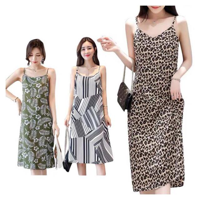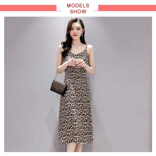 ヒョウ柄 レディース 夏 ロングキャミソール ノースリーブ キャミワンピース キャミソール インナー サマーワンピース ゆったり 送料無料 シンプル カジュアル 着痩せ キャミソール