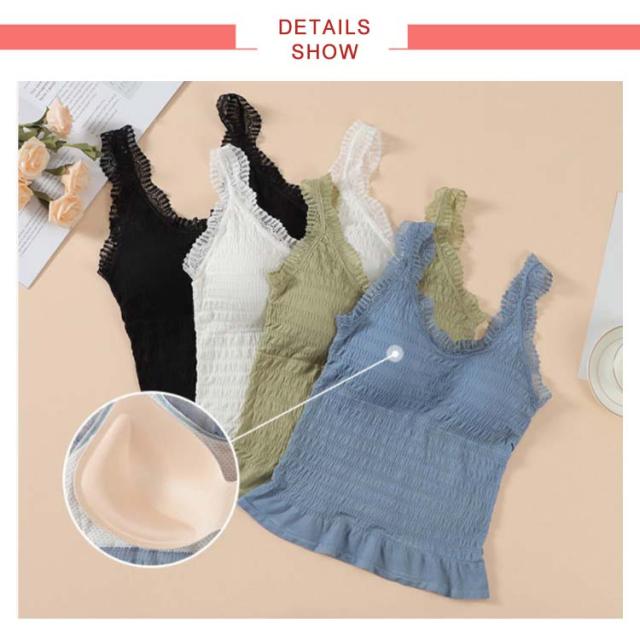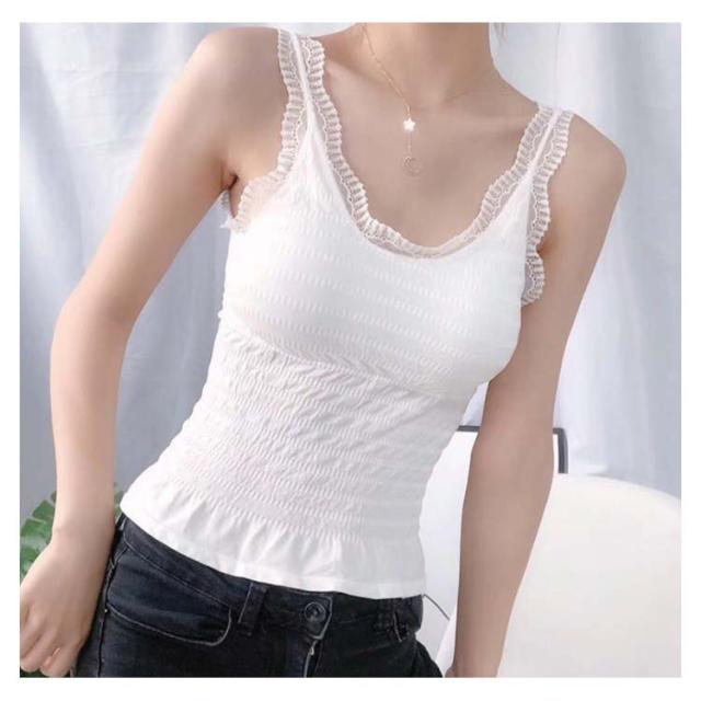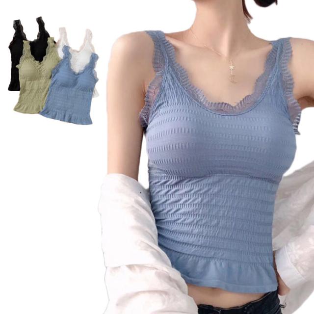 レディース 夏 フリル レースキャミソール ロングインナーキャミソール カップ付き セクシー キャミソール インナーウエア キャミソール 送料無料 無地 シンプル カジュアル プリーツキャミソール