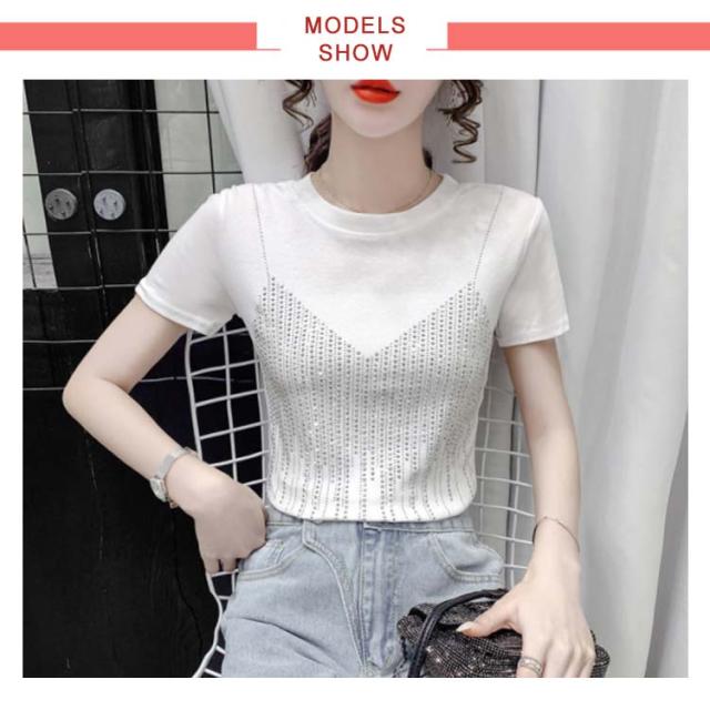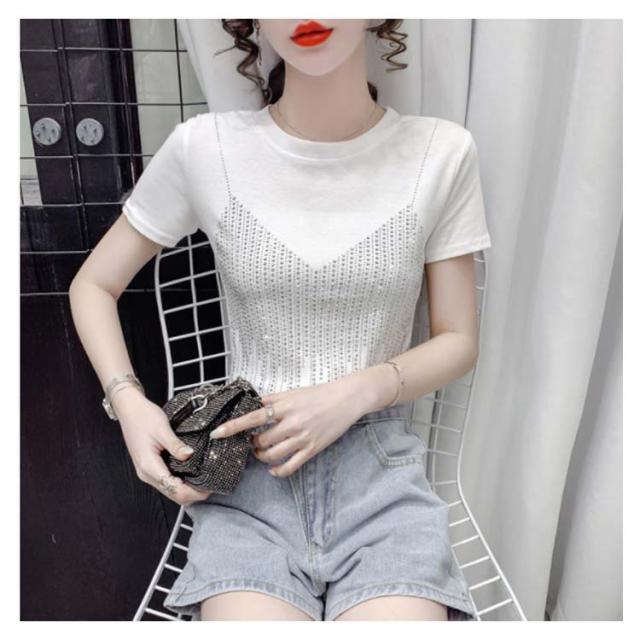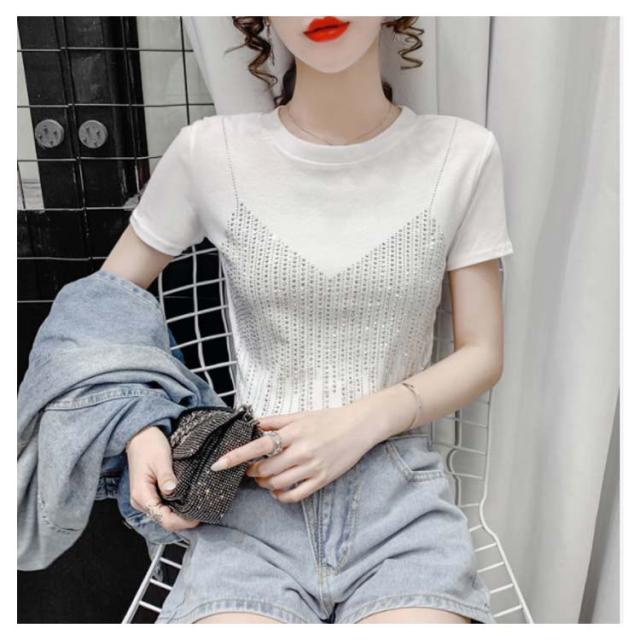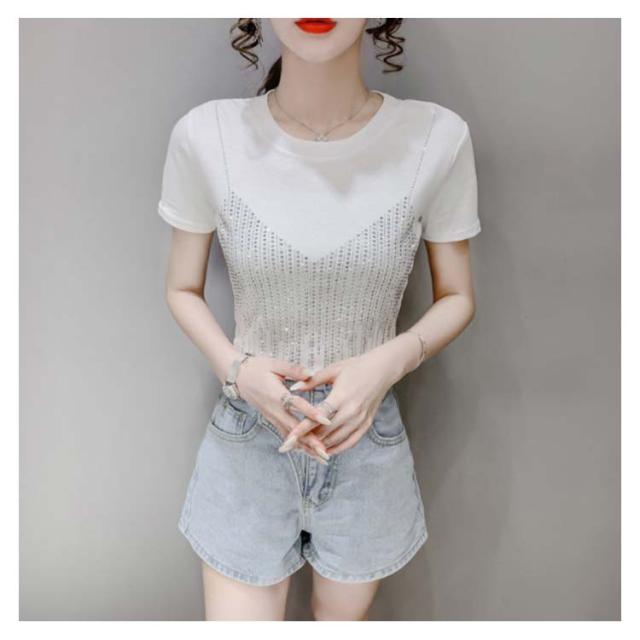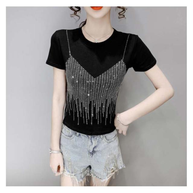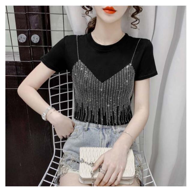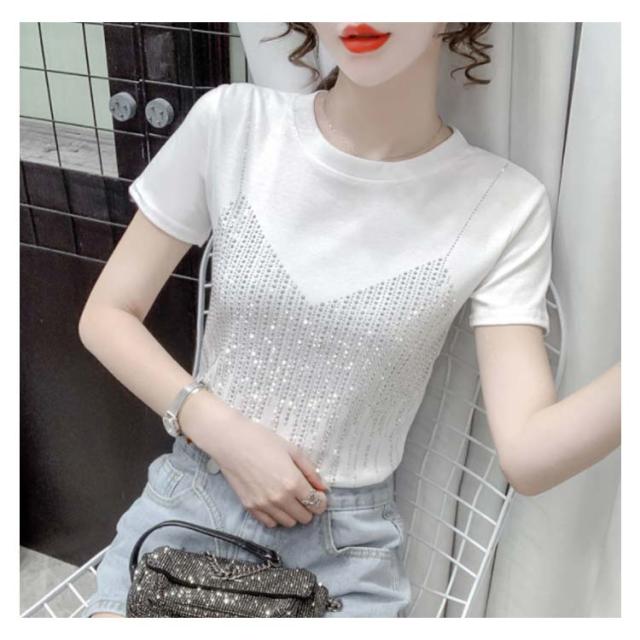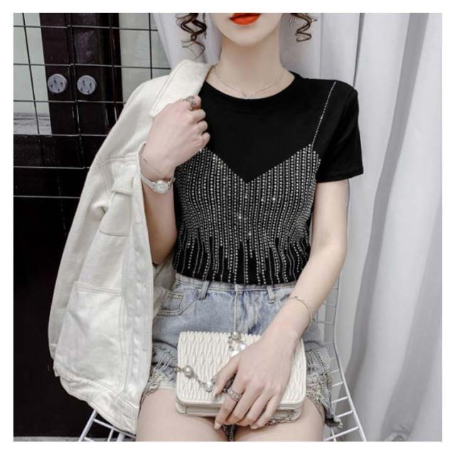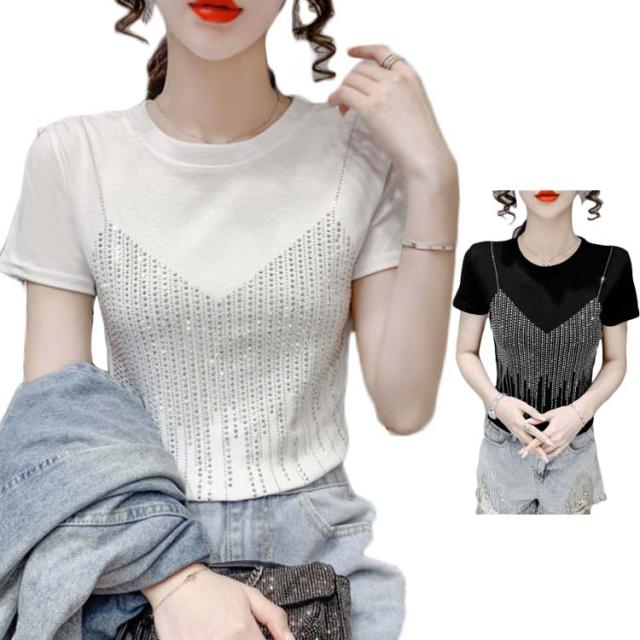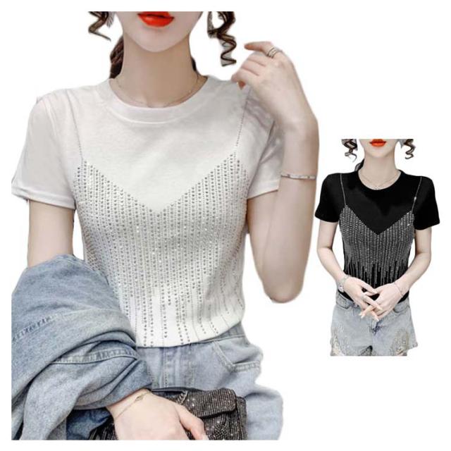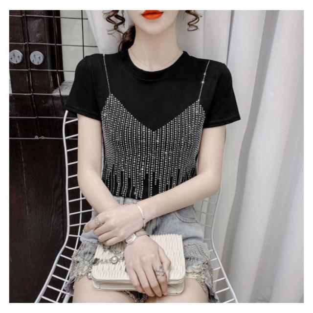 レディースブラウス夏半袖キラキラダンス衣装トップスシャツキラキラトップス丸襟無地コットン送料無料シンプルカジュアルおしゃれダンスウエア