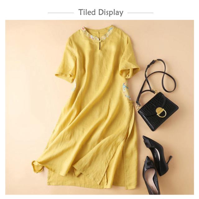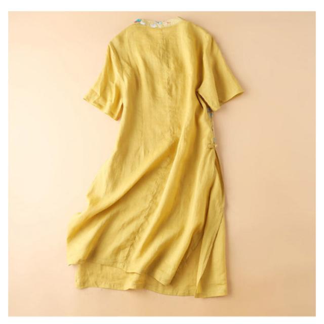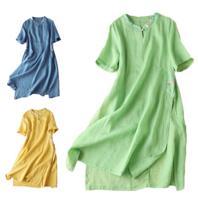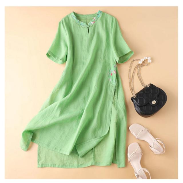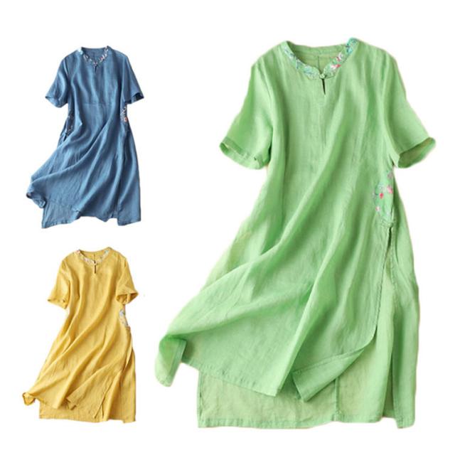 レディース スリットいり ワンピース 刺繍ワンピース 半袖 リネンワンピース 無地 ロングワンピース 夏 レディース リネン 送料無料 Aライン シンプル マキシワンピース 麻 夏新作 綿 カジュアル おしゃれ 旅行 丸襟