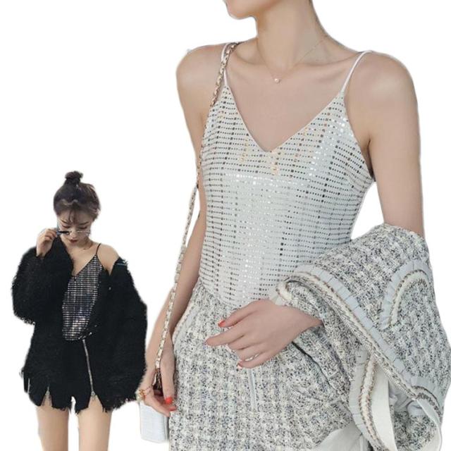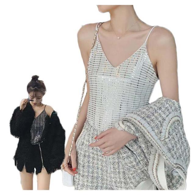 レディース Vネック ダンス衣装 上着 セクシー スパンコール キャミソール ステージ衣装 トップス 無地 タンクトップ キラキラ 着痩せ オシャレ インナー レディース 送料無料