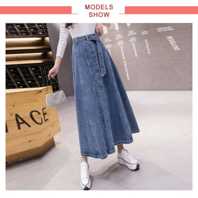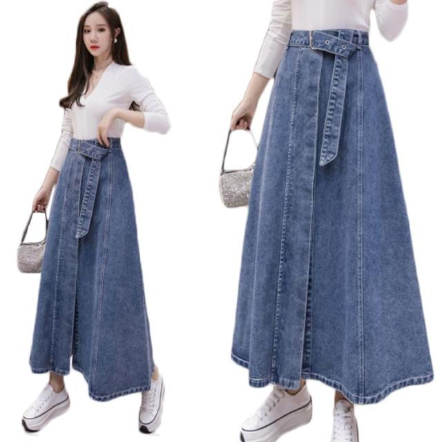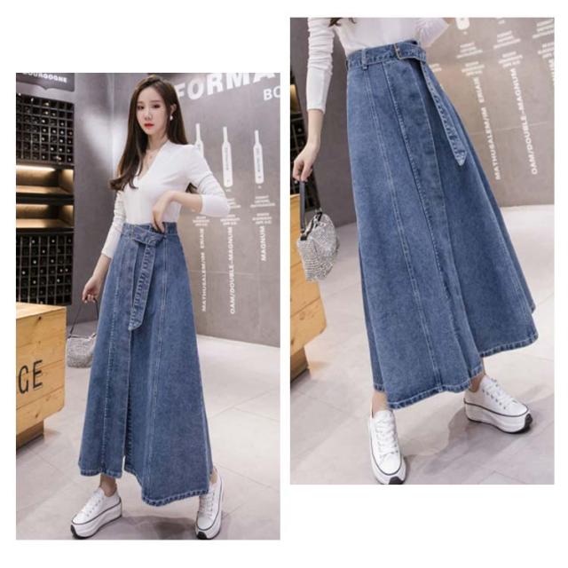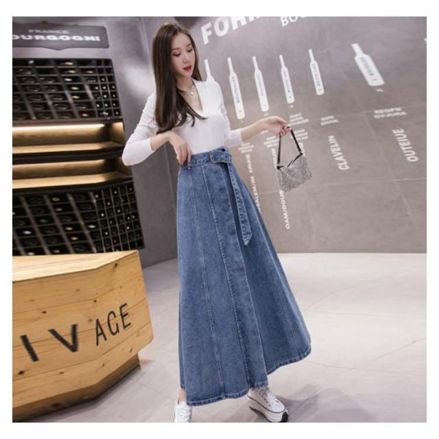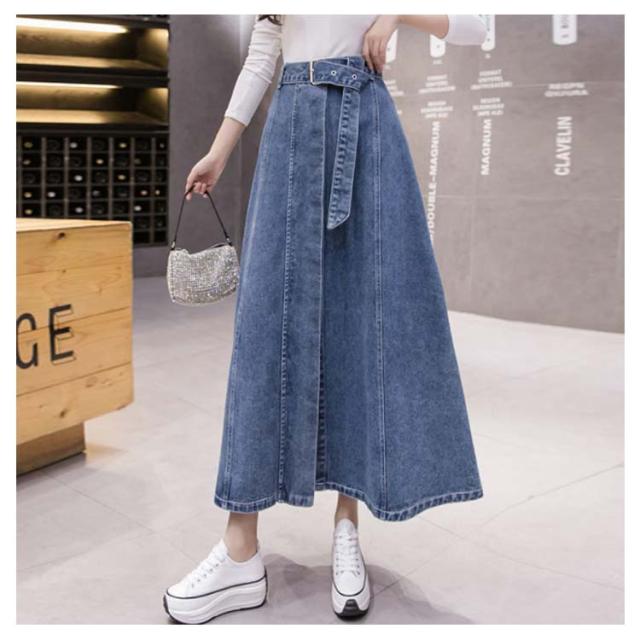 Aラインスカート デニムスカート ロングスカート デニムスカート ミモレ丈スカート スカート リボン付デニムスカート 膝下 韓国 ファッション レディース 大きサイズ おしゃれ シンプル カジュアル お出かけ ハイウエスト