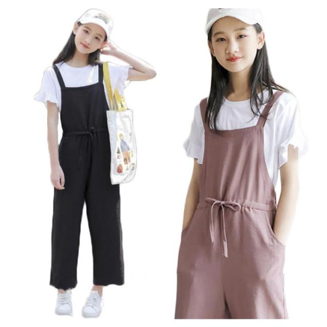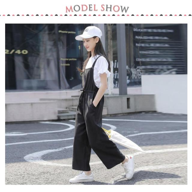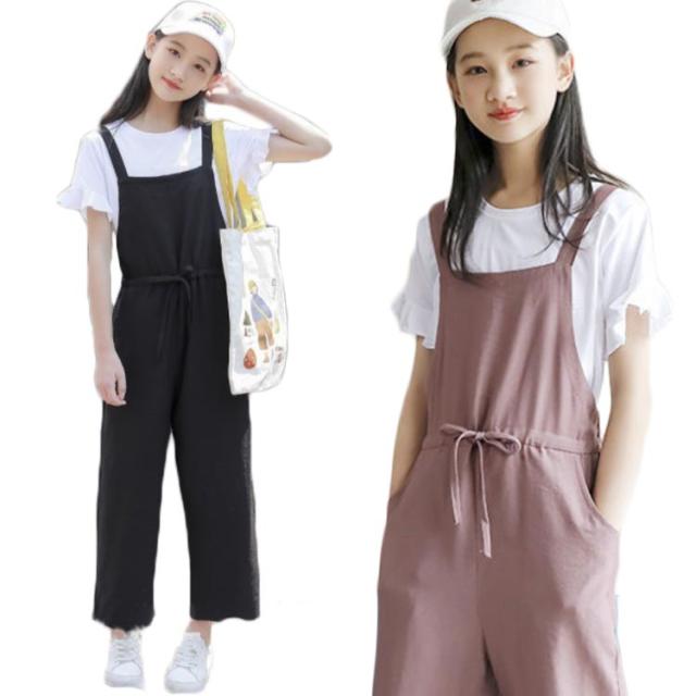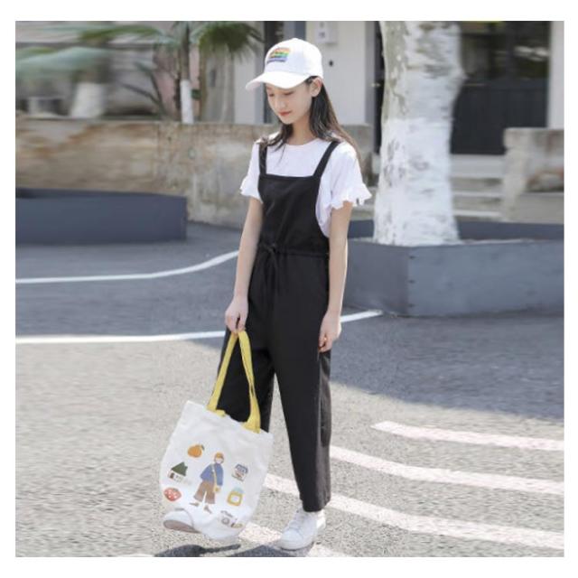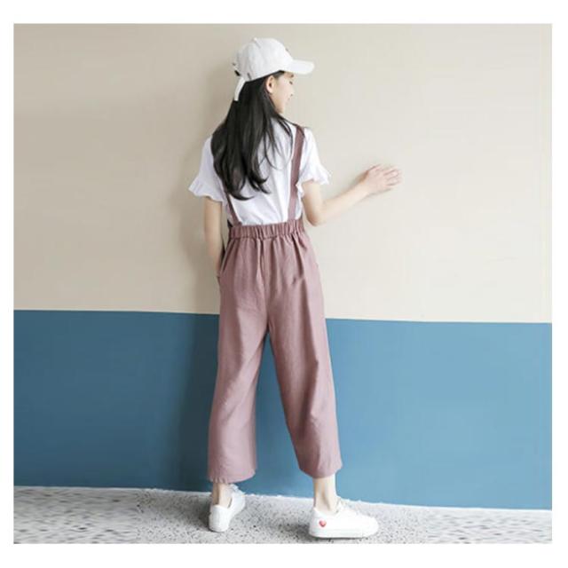 二点セット 半袖 キッズ サロペットパンツ 夏服 女の子 薄手 夏 Tシャツ トップス オーバーオール 送料無料 子供服 ウエスト紐 シンプル 無地 キッズ