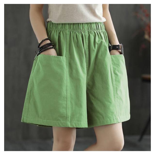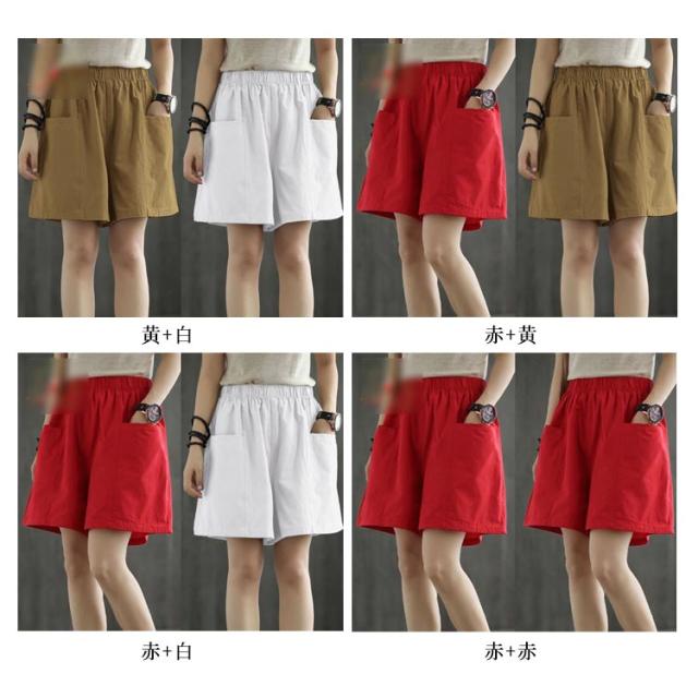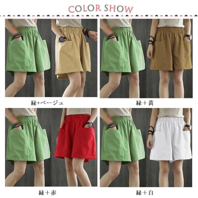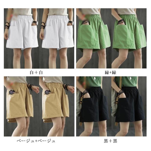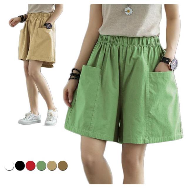 パンツ レディース ショートパンツ ショートパンツ ワインドパンツ ウエストゴム 五分丈 コットン 綿 ハイウエスト 無地 新作 夏服 送料無料?ボトムス 着痩せ ハーフパンツ