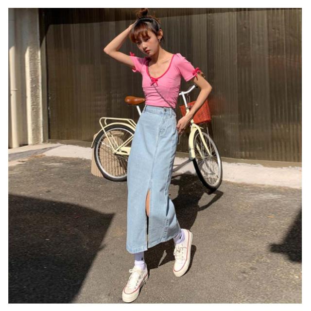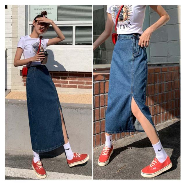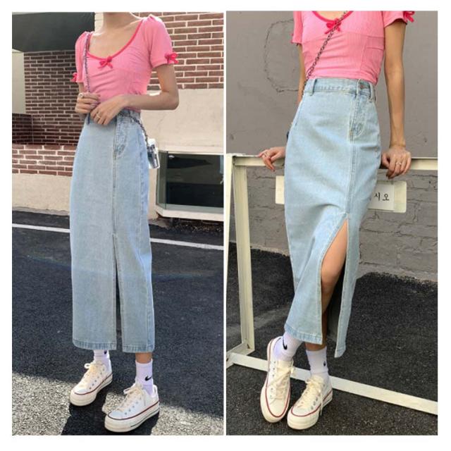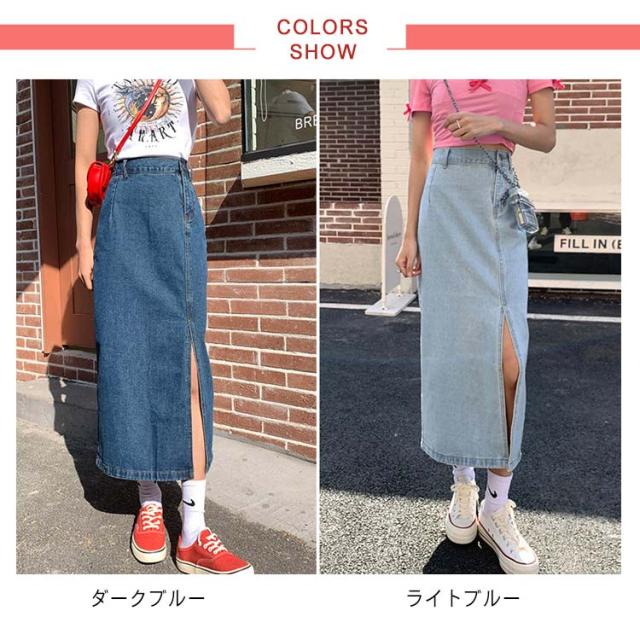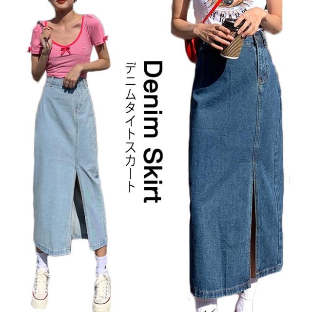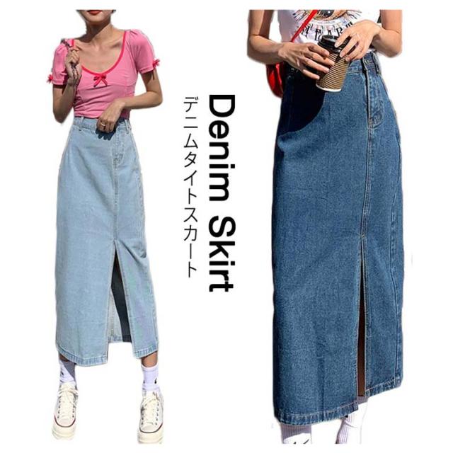 マキシ丈 スカート スリット入り タイトスカート タイト マキシスカート スカート レディース ミモレ丈 デニムスカート Iライン スカート デニム ロングスカート 美脚 スリット入り ペンシルスカート 春夏 エレガント デニム