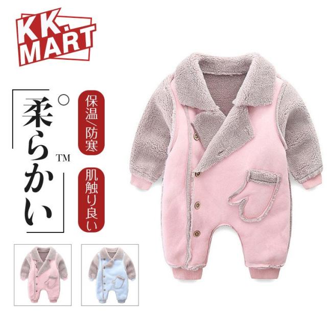 秋冬 ロンパース つなぎ 新生児 防寒着 長袖 幼児 ボア付き カバーオール 男の子 女の子 ジャンプスーツ ベビー服 赤ちゃん 長袖