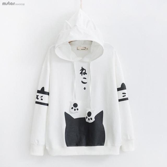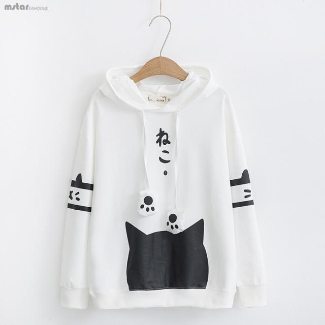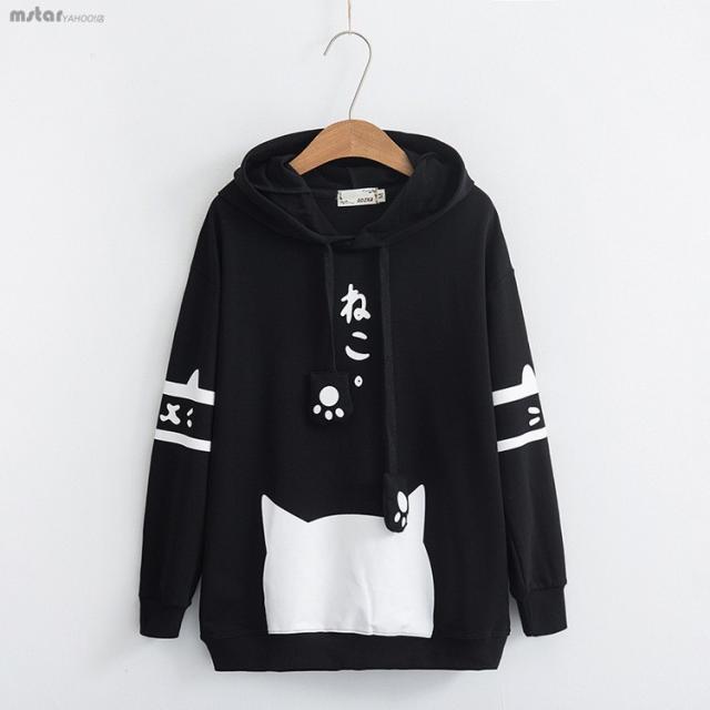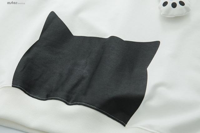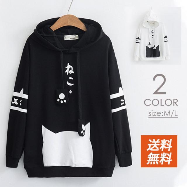 パーカー 送料無料 パーカー レディース 長袖 トップス フード付き プリント 猫柄