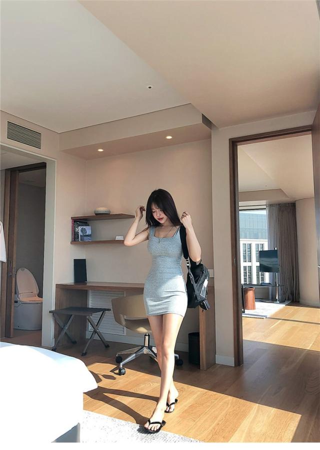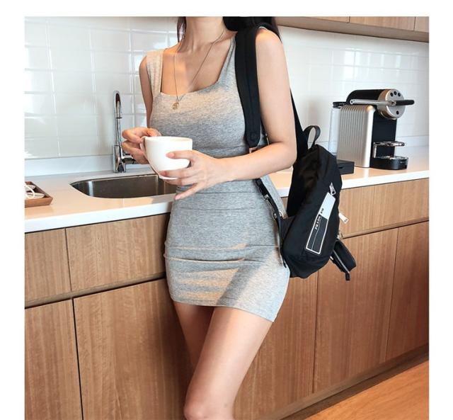 細身 レディース ミニ丈 ワンピース キャミワンピ ワンピース Tシャツワンピース タイト ノースリーブ インナー 無地