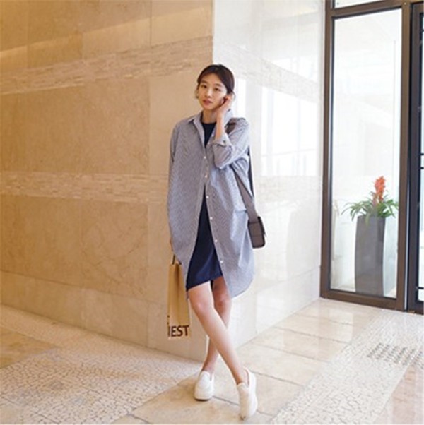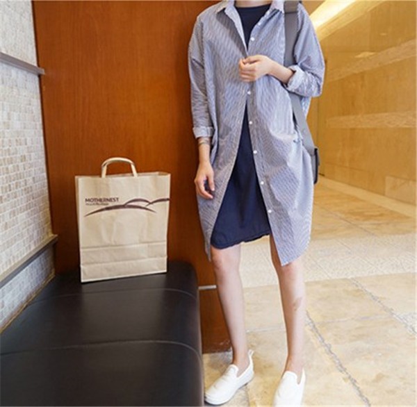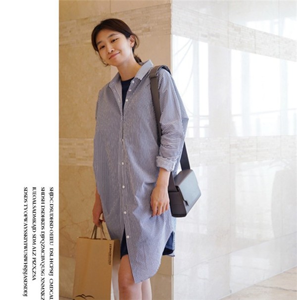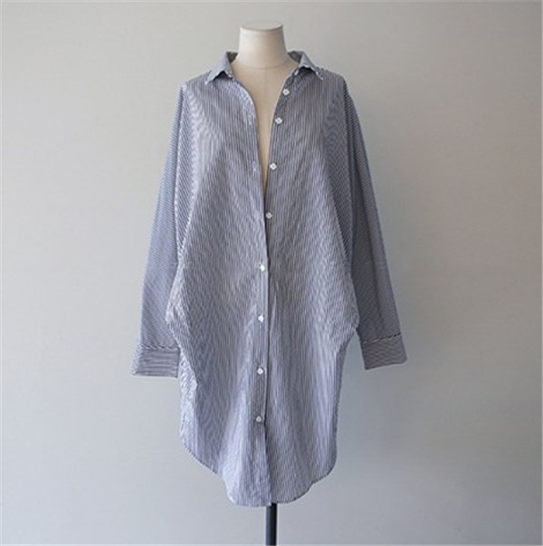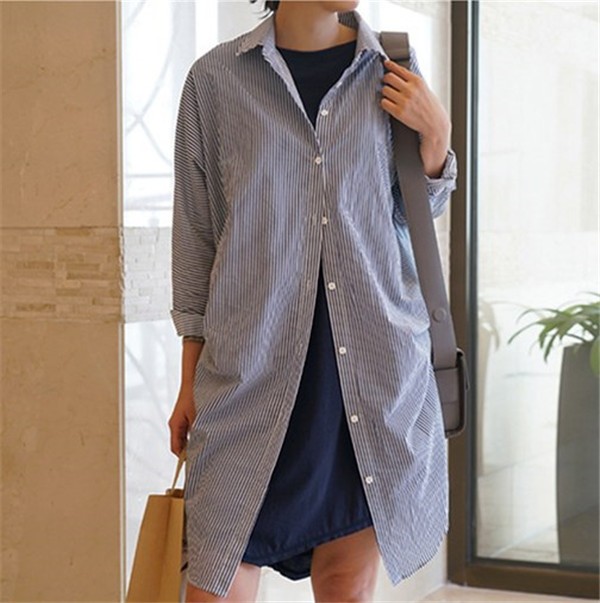 送料無料 シャツ ストライプ レディース Vネック ロングチュニック ブラウス ロングブラウス 大きいサイズ シャツワンピース ロング 長袖 送料無料