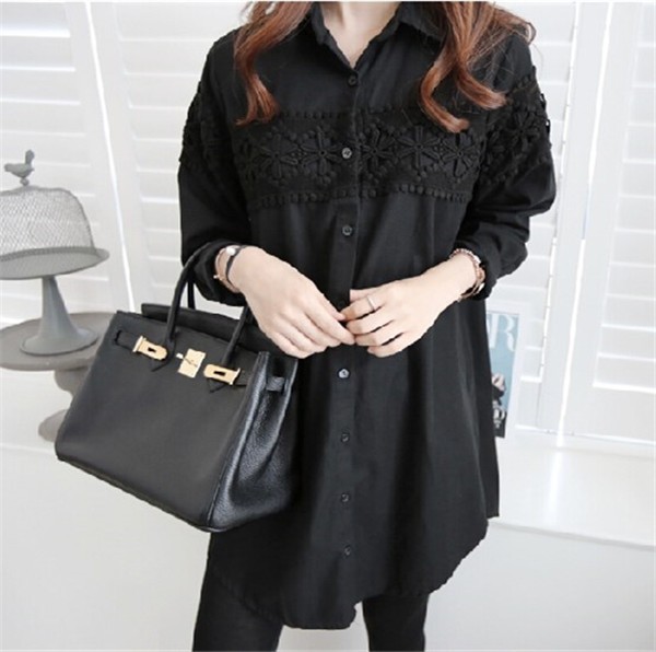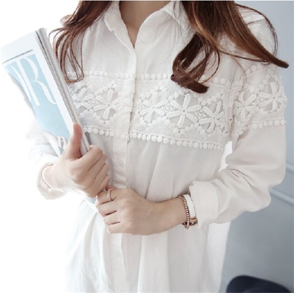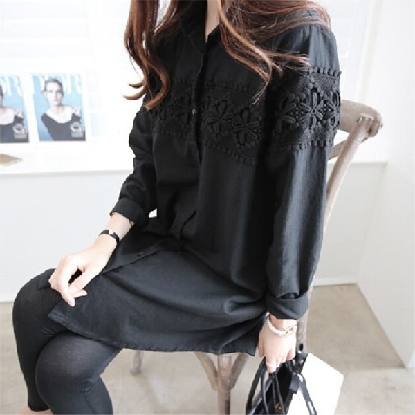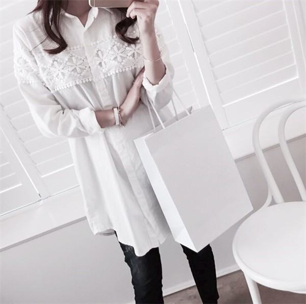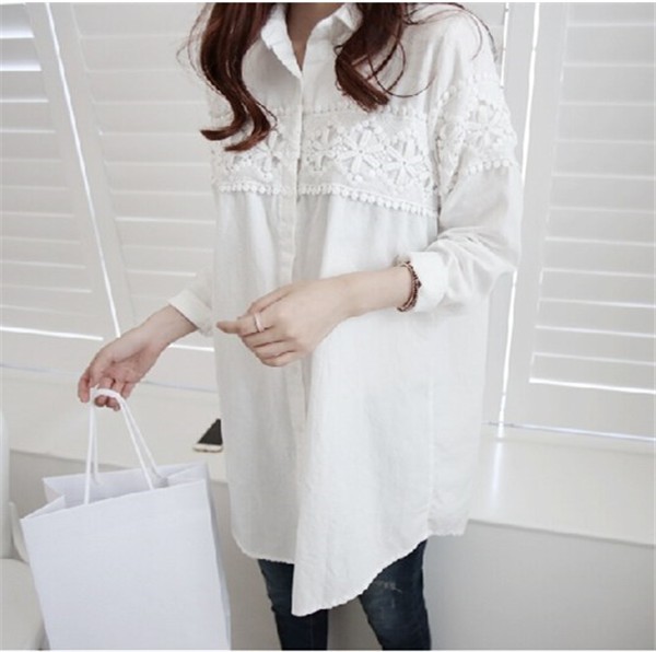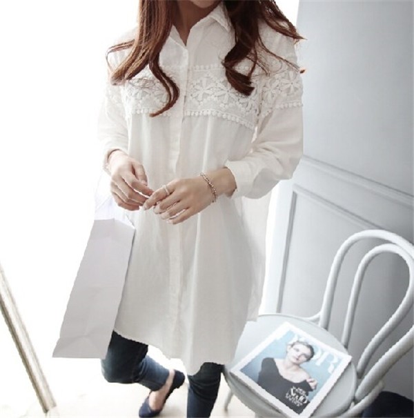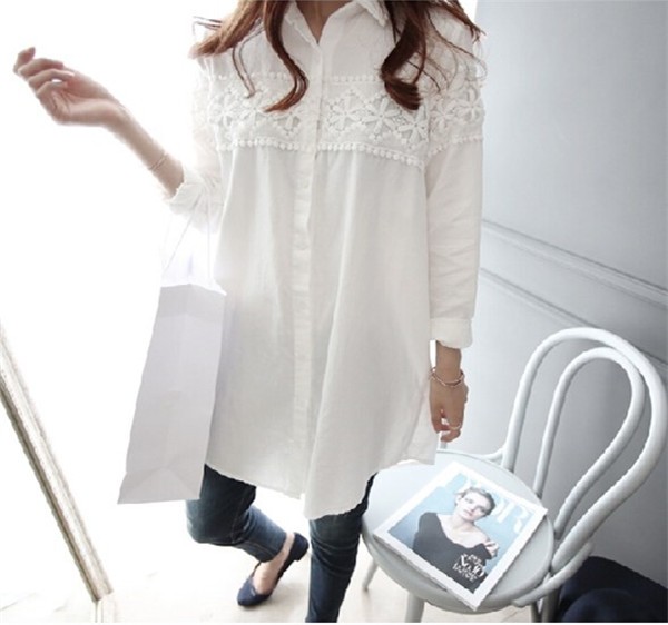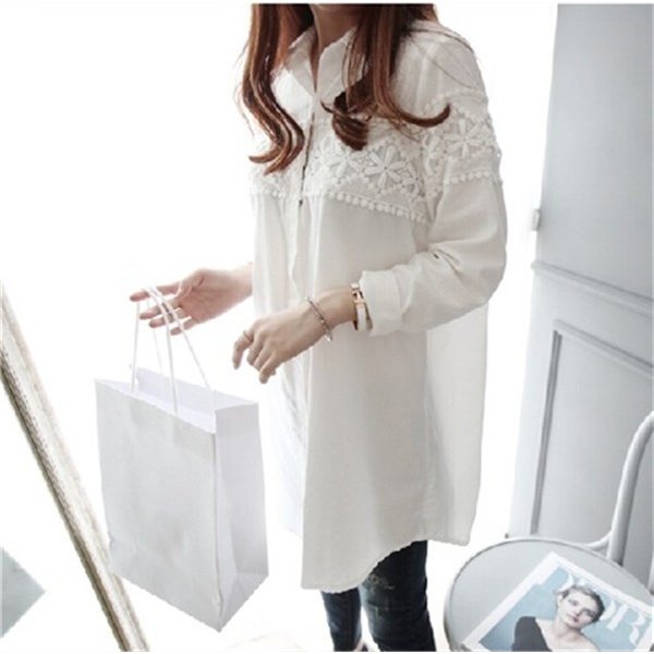 送料無料 ブラウス ロングブラウス レディース レース柄 Vネック 白シャツ ロングチュニック 送料無料 大きいサイズ シャツワンピース 長袖 シャツ
