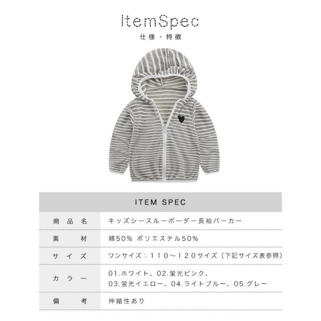長袖 キッズパーカー シースルー パーカー パーカー ボーダー ボーダーパーカー シースルーパーカー カラー豊富 カラーバリエーション豊富 キッズ