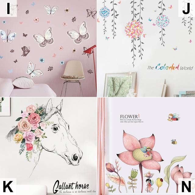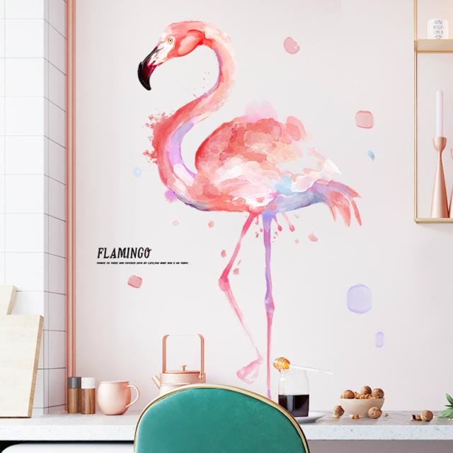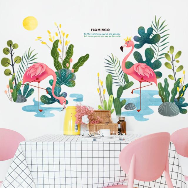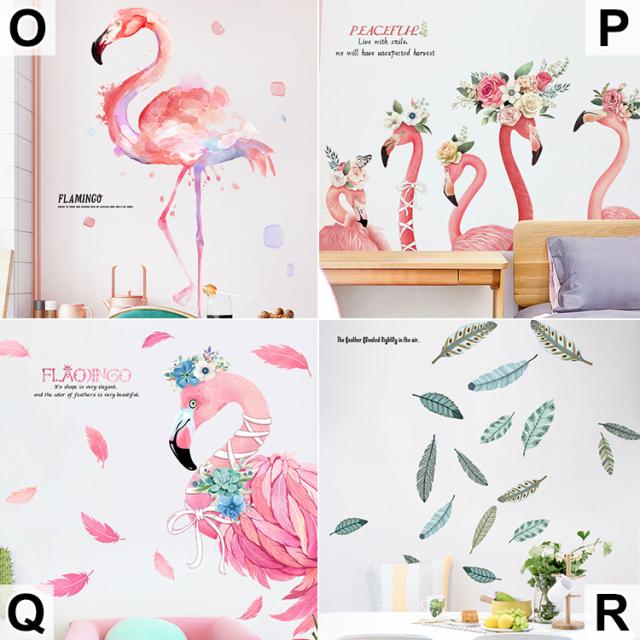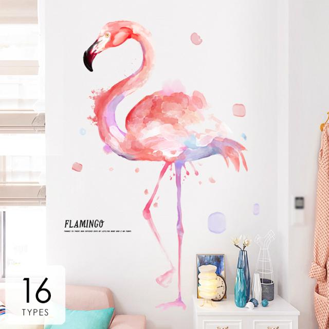 雑貨 アニマル ウォールステッカー 壁紙デコ ルームデコ インテリア フラミンゴ インテリア アート風 花 ピンク グリーン ブルー 壁紙