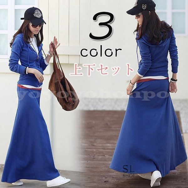 上下 セットアップレディース セットスエットパーカーロングスカート2点セット セットアップレディース