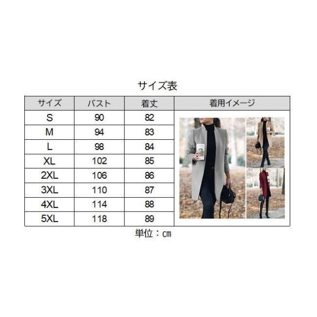 | サイズについての説明 | レディース用のおしゃれなチェスターコートです。 シンプルな無地なので、どんなボトムスやインナーとも相性抜群◎ 【サイズについて】 画像をご参照ください。 |