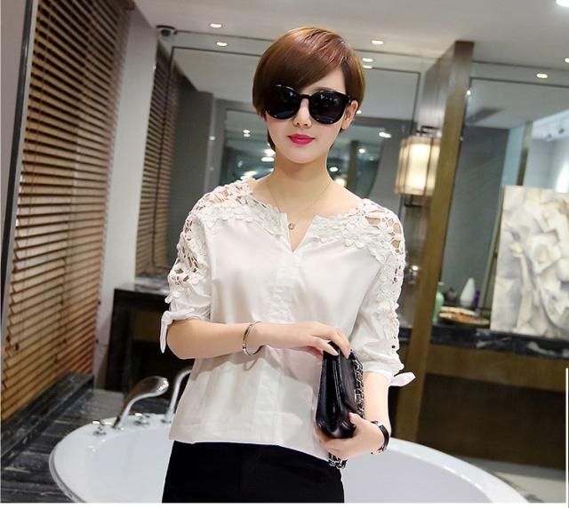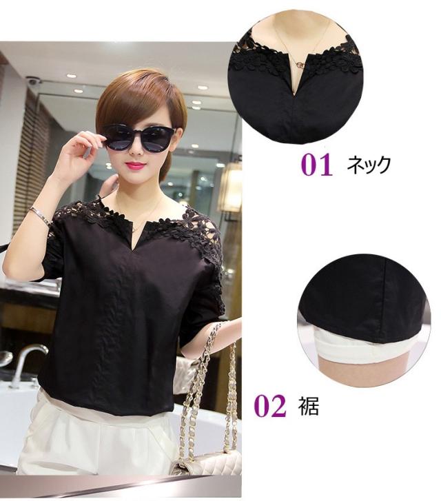ブラウス レディース オシャレ 大きいサイズ ブラウス レース ブラウス 白 半袖トップス オフィス 韓国風 ブラウス 40代 通勤 OL 着痩せ 大人 肩出し