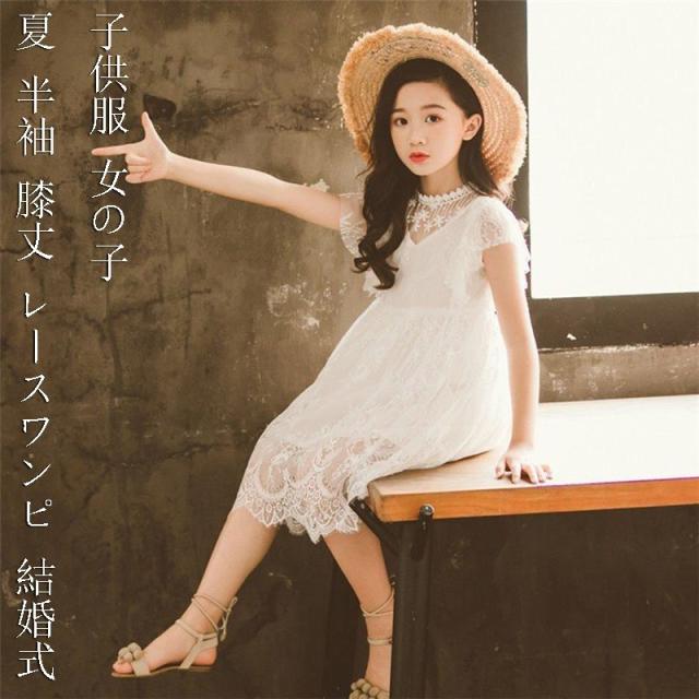 子供服 可愛い 夏 dress 子供ドレス キッズ 女の子 韓国子供服 半袖 膝丈 レースワンピ 結婚式 発表会 ピアノ おしゃれ 子供服 ワンピース