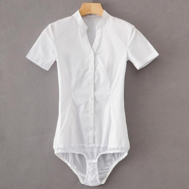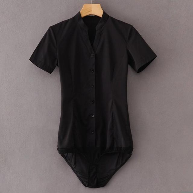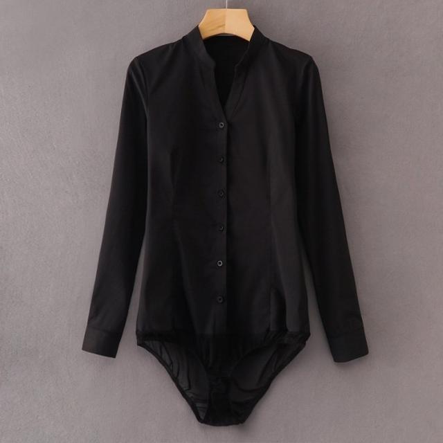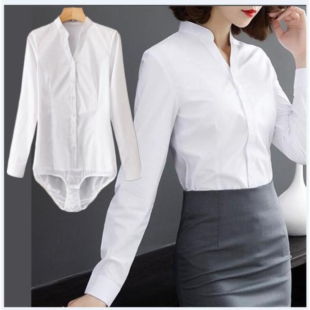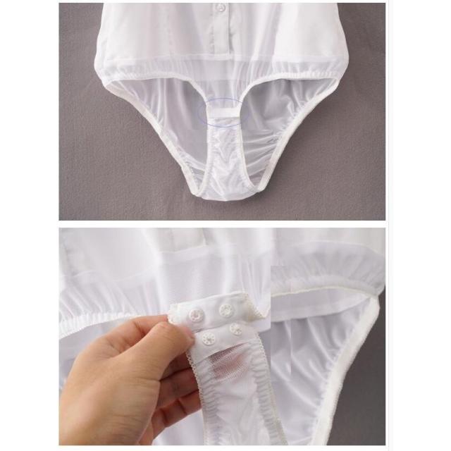 フリル Vネック ブラウス 長袖 クロッチ付 ボディーブリファー ボディシャツ トップス ツナギ 薄手 無地 インナー 2色 大きいサイズあり 通勤OL Vネック