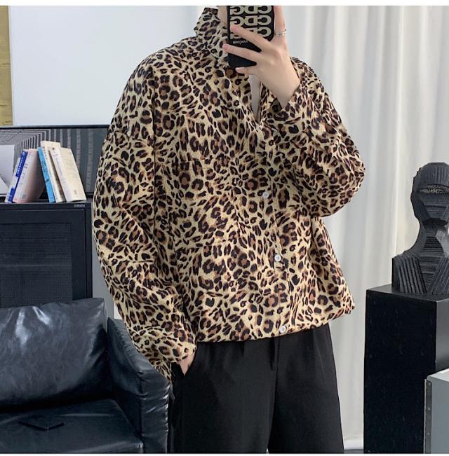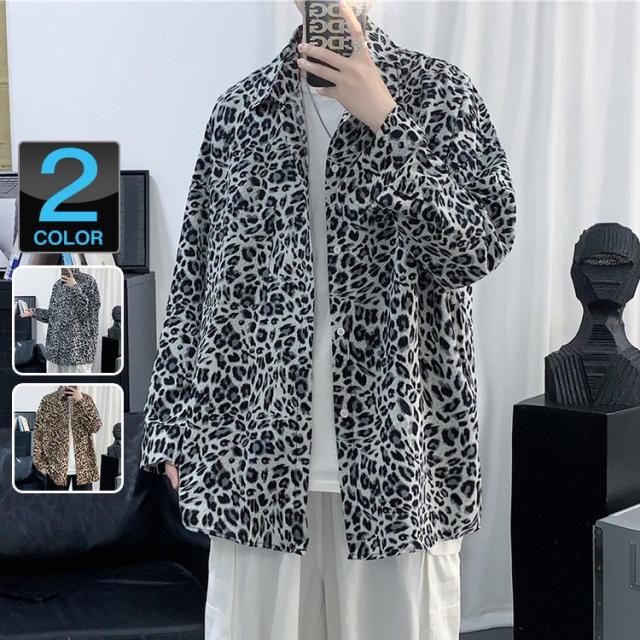 カジュアルシャツ メンズ シャツ 長袖シャツ カジュアルシャツ ヒョウ柄 トップス 40代 おしゃれ