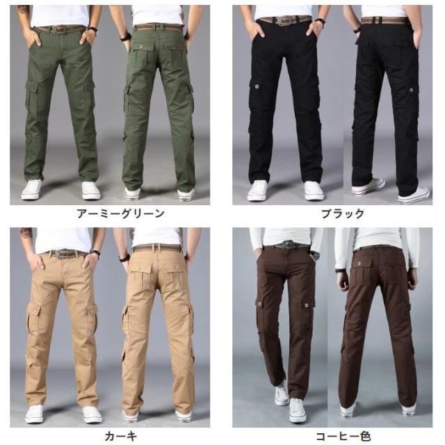 カーゴパンツ 無地 カジュアル ストレート コットン 長ズボン ワークパンツ 作業服 マルチポケット カーゴパンツ メンズ