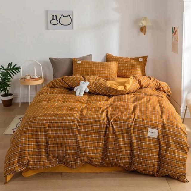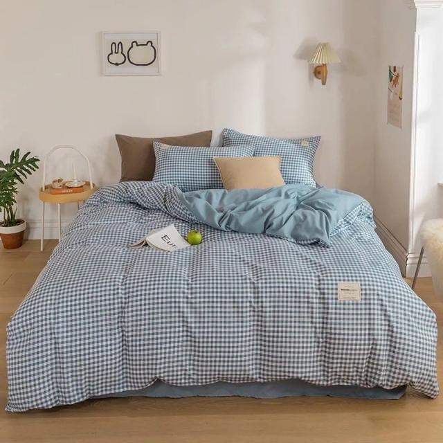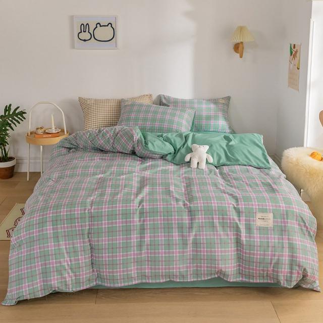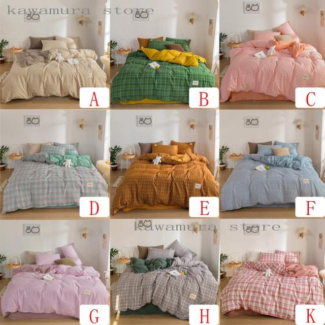 ベッドカバー 布団カバー ベッドカバー チェック柄 春秋 寝具カバー シングル 掛け布団カバー おしゃれ ダブル 柔らかい 綿 ベッドカバー 寝具セット4点セット